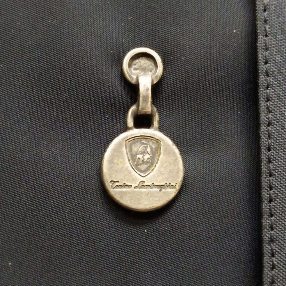Portafoglio nero Tonino Lamborghini con medaglietta sulla parte frantale con diametro di 20 mm.