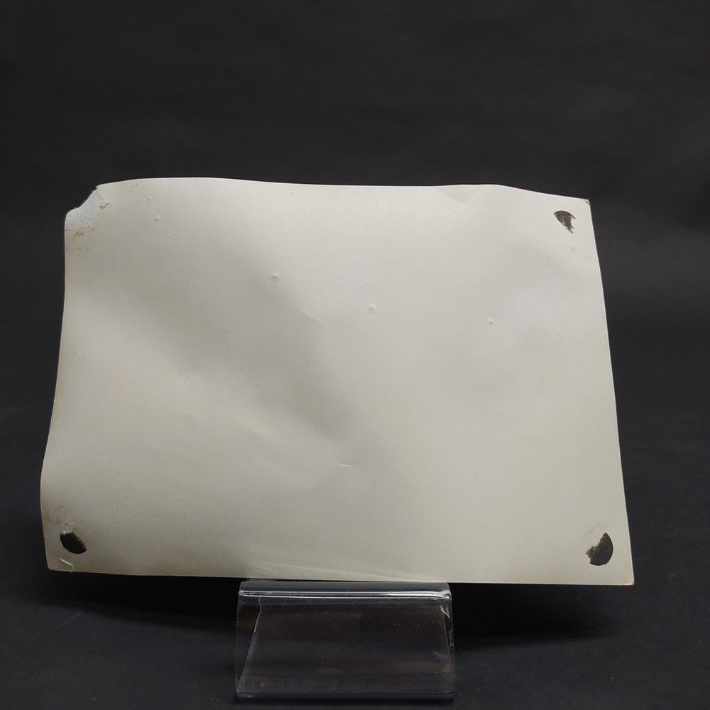 L'immagine è in condizioni mediocri con strappi e pieghe agli spigoli, un alone rossastro da un lato e segni di scollamento sul retro.