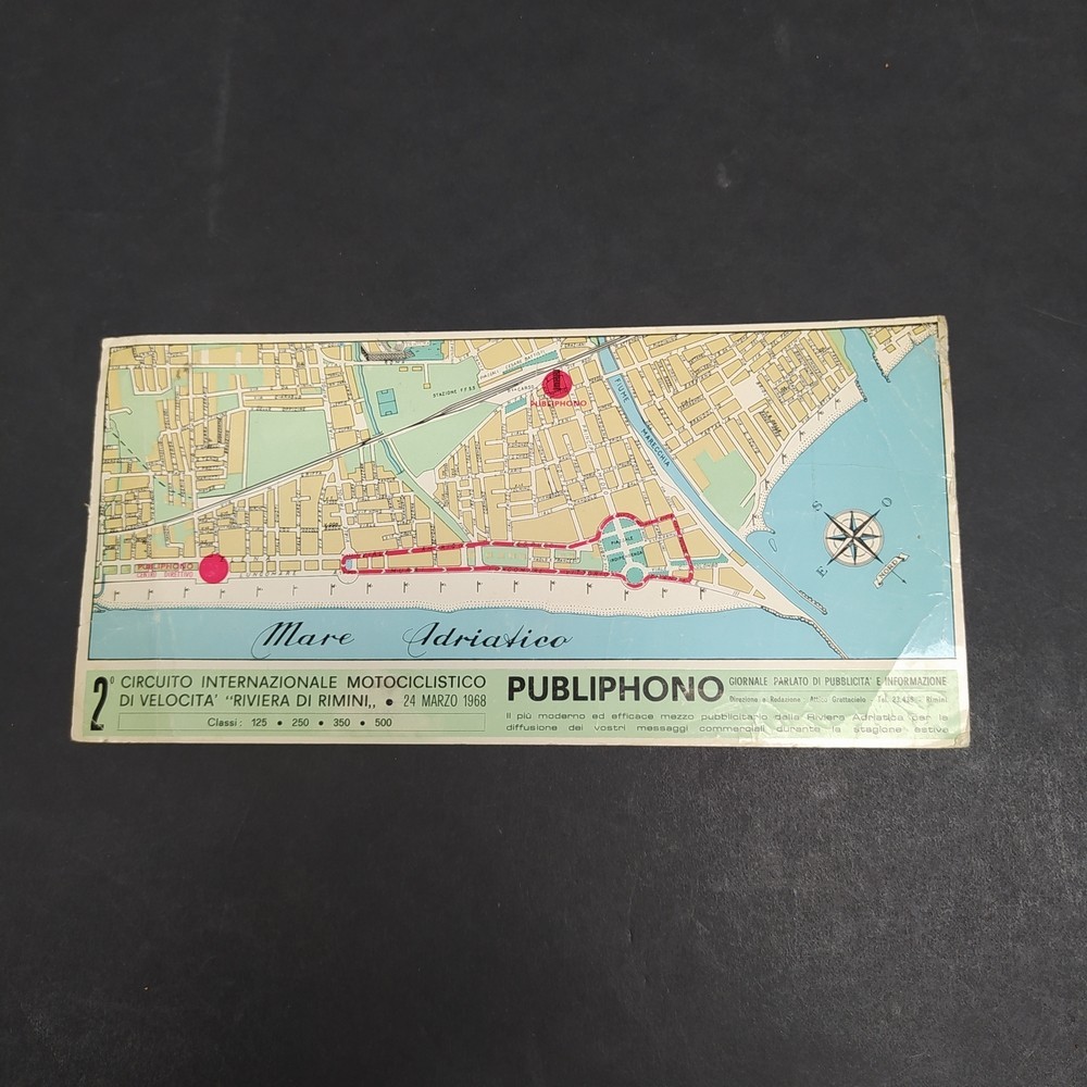Cartolina del Moto Club Rimini realizzata per il 2° Circuito Internazionale motociclistico di velocità "Riviera di Rimini" del 24 marzo 1968.