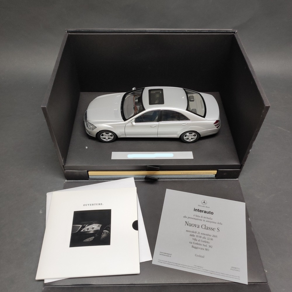 Raro cofanetto promozionale Mercedes-Benz dedicato alla presentazione della Classe S (serie W221, anno 2005). Il set comprende: